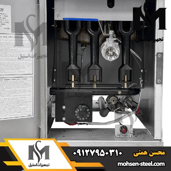 دوام و ایمنی بالا: بدنه استیل ضدزنگ عمر دستگاه را به ۱۰ سال میرساند. ترموکوپل و شیر ایمنی هم از حوادث جلوگیری میکنند – آرامش خاطر برای شما و کارکنان.